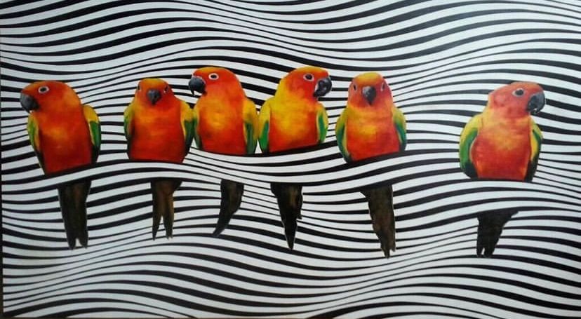 Parrot acrylic and oil on canvas 135x125cm 2018