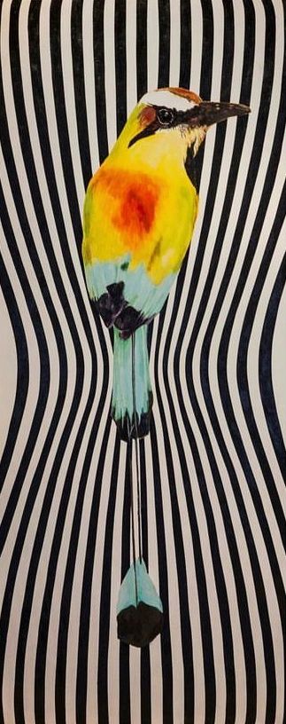 Turquoise Browed Motmot acrylic and oil on canvas 200x60cm 2017