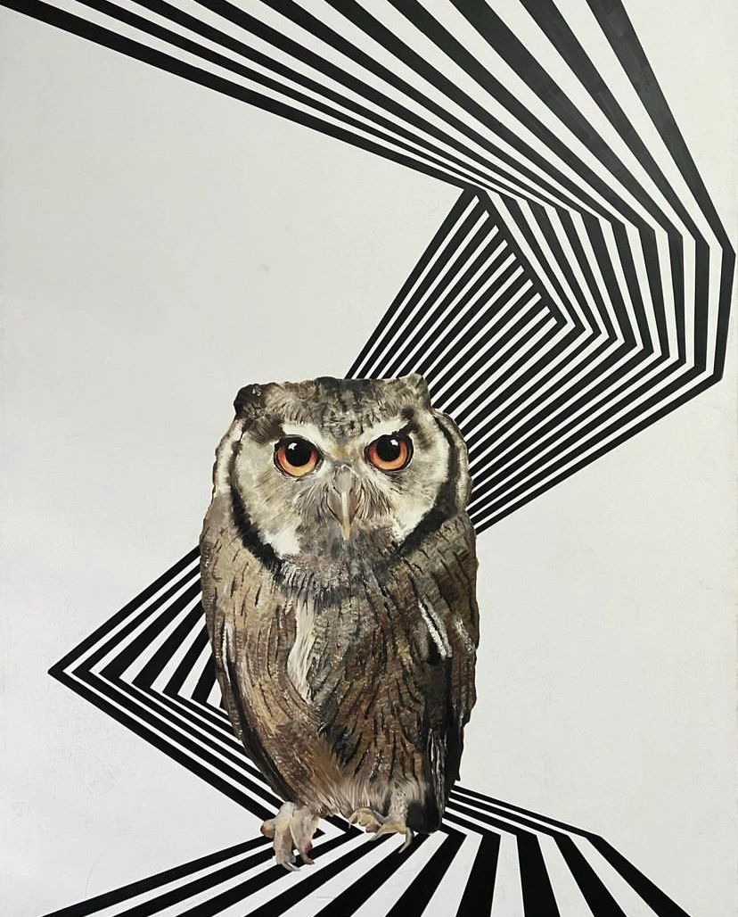Lines and Owl acrylic and oil on canvas 120x100cm 2018