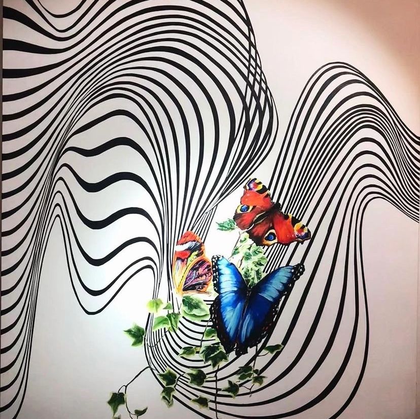Butterflys on Lines acrylic and oil on canvas 180x75cm 2019