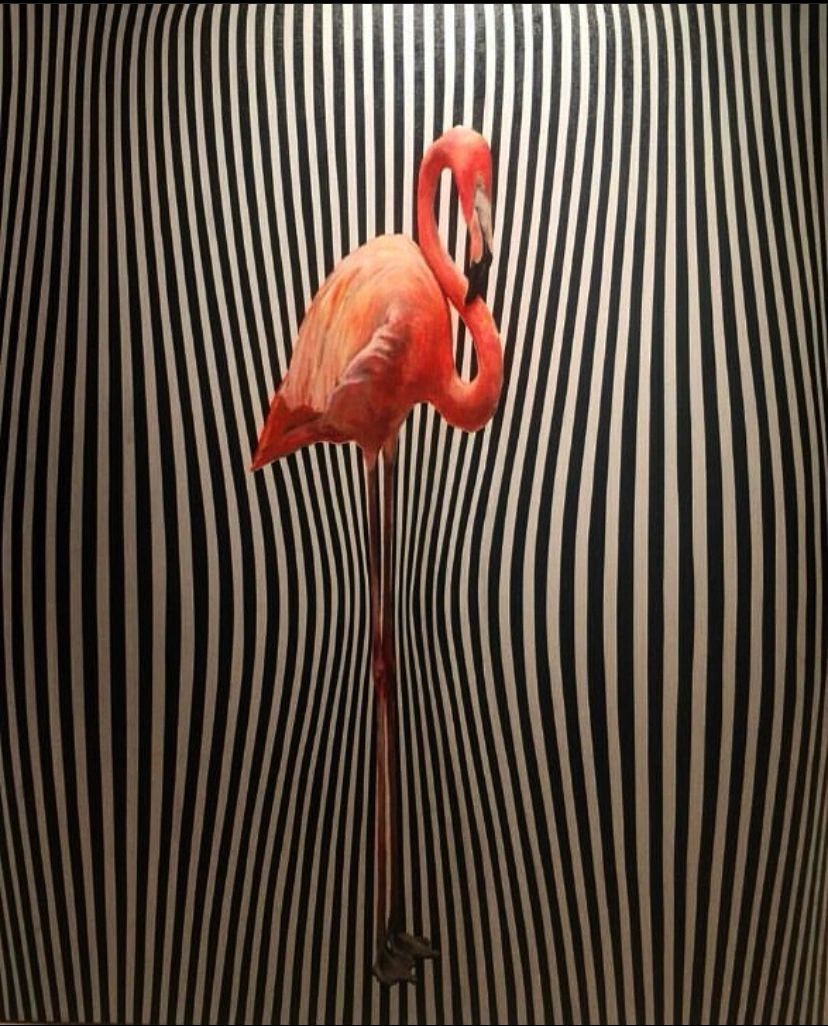 Phoenicopterus Between Lines acrylic and oil on canvas 150x110cm 2016