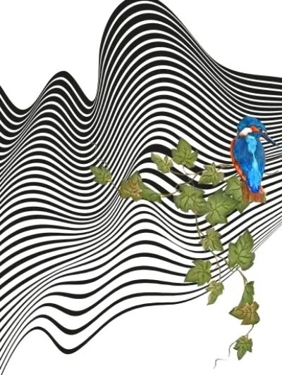 Kingfisher bird acrylic and oil on canvas 180x120cm 2019