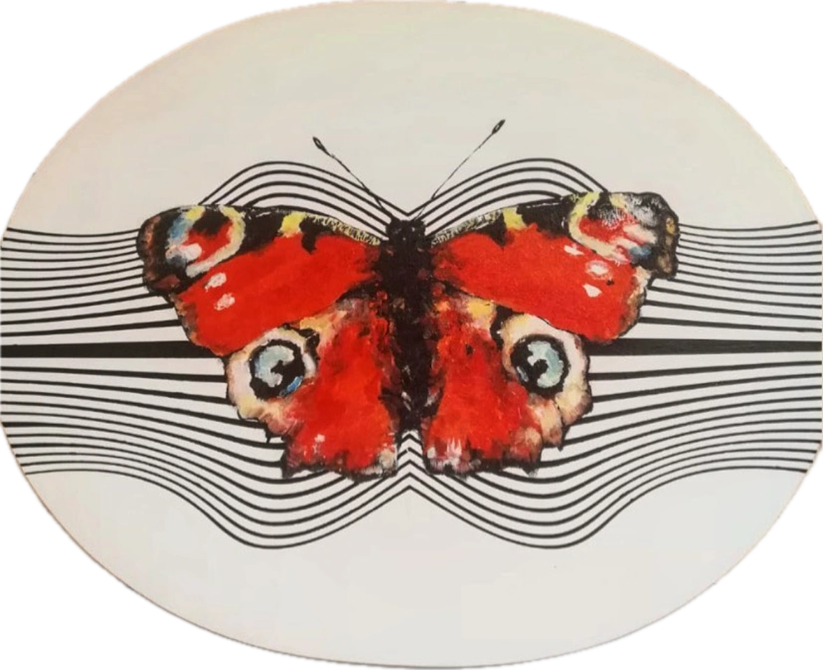 Red Admiral Peacock Butterfly Acrylic and oil on canvas 35x50cm 2020