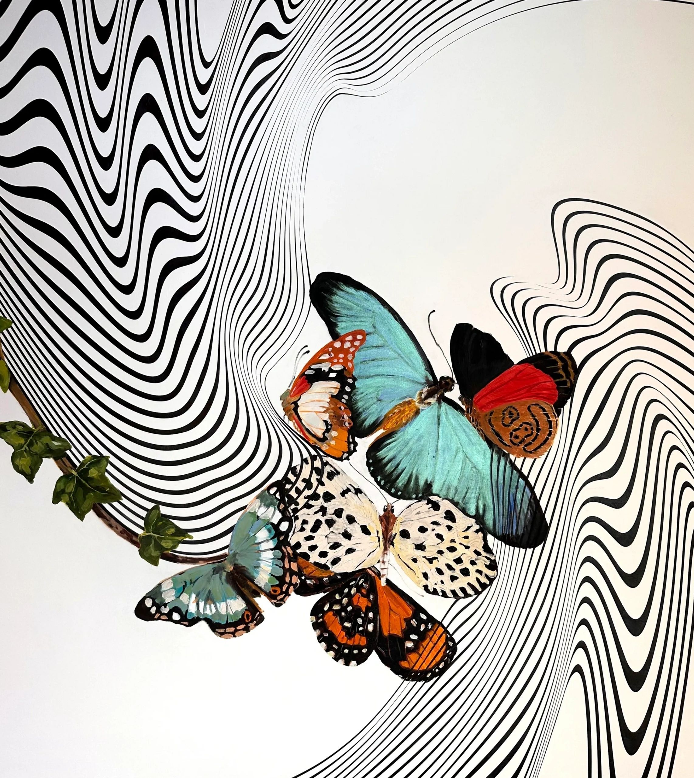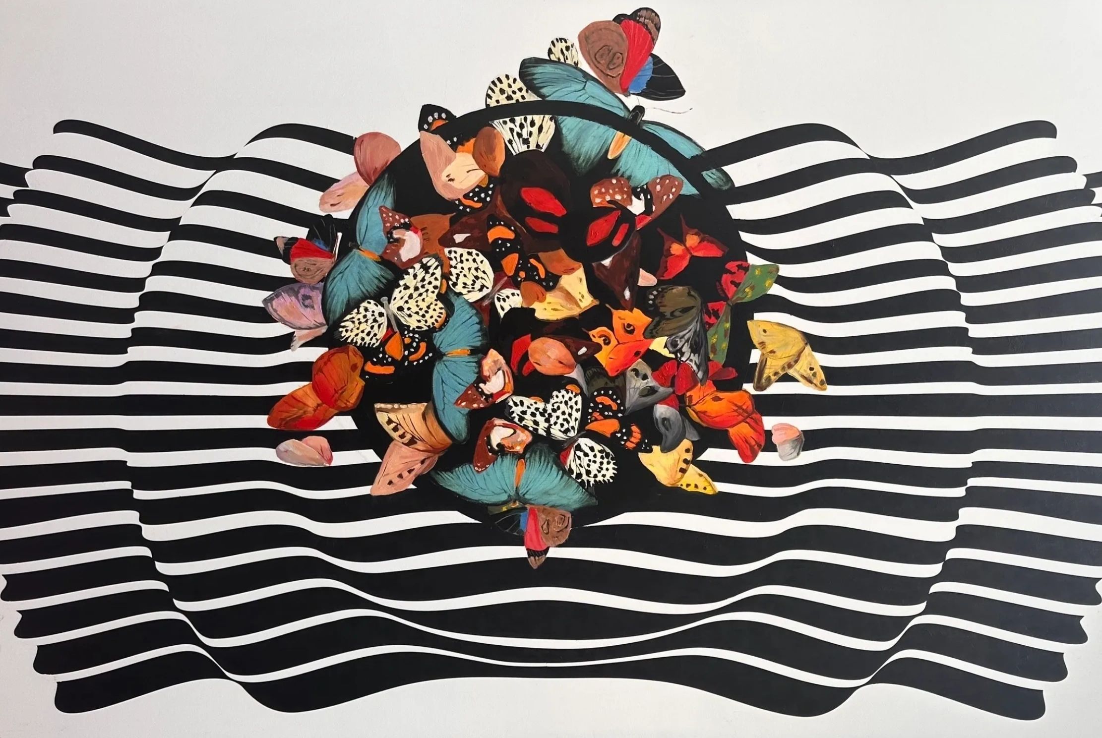 Butterflies in the Atmosphere acrylic and oil on canvas 100x90cm 2023
