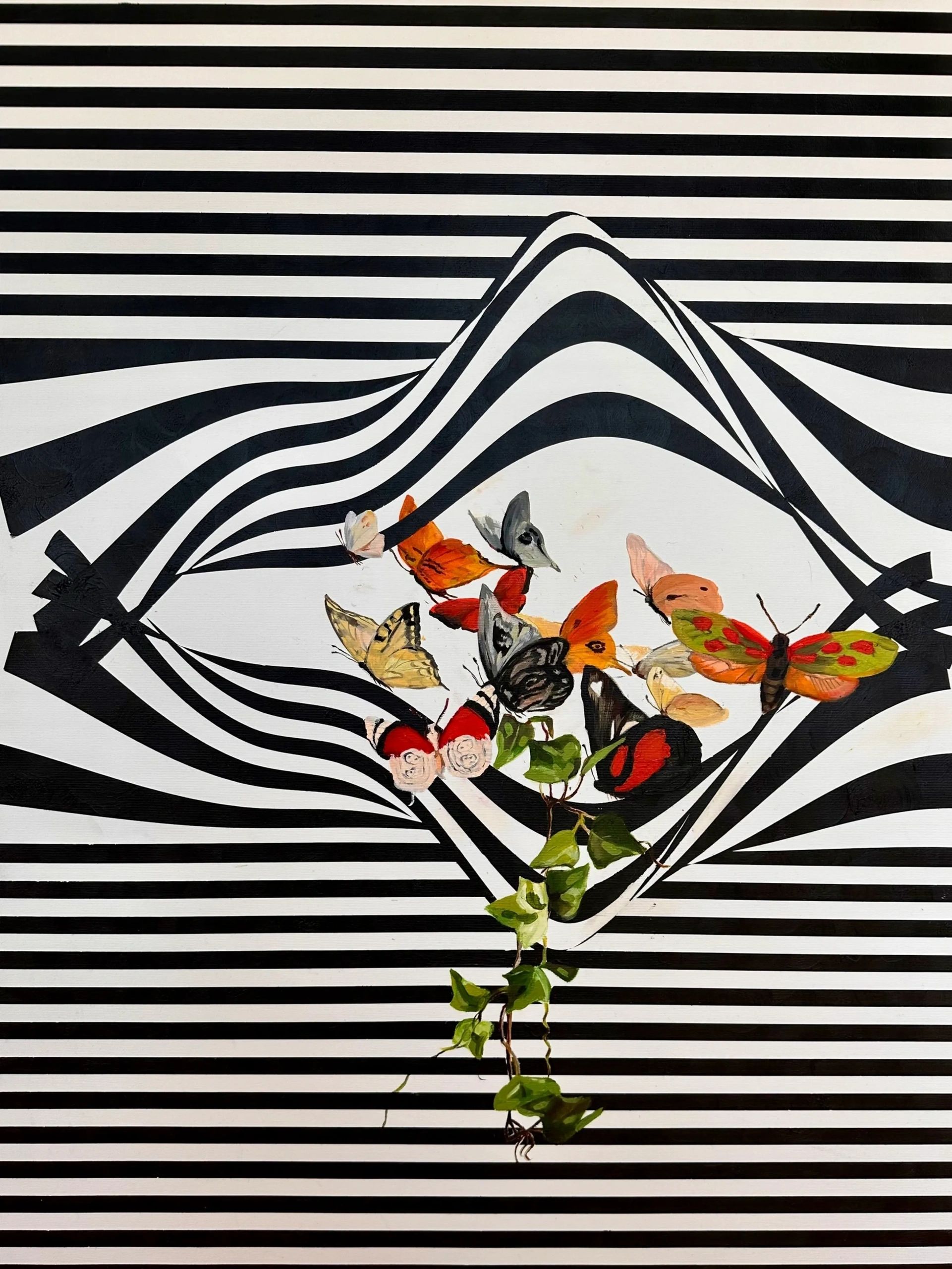 Butterflies in the Empty acrylic and oil on canvas 80x60cm 2023