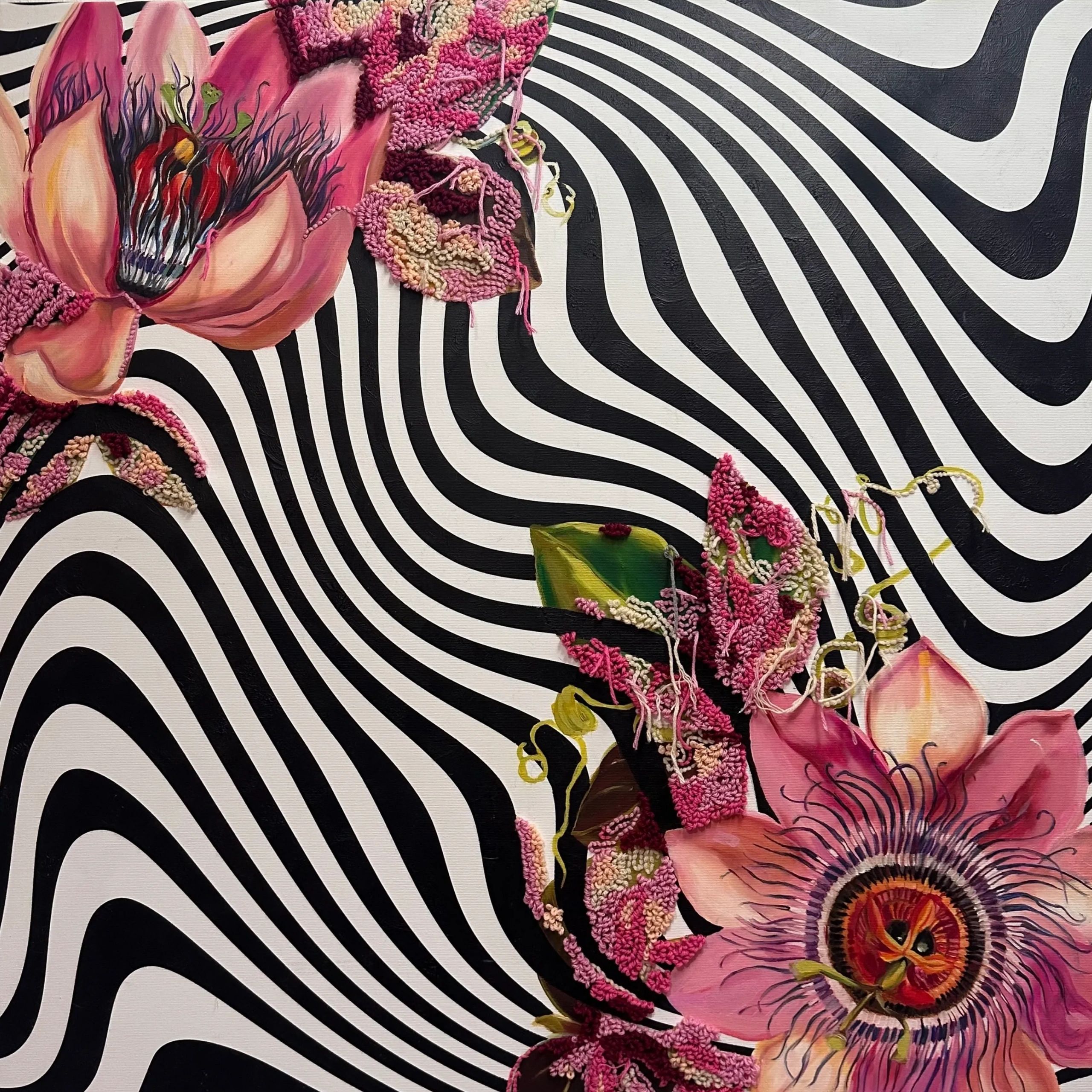 Heart Attack acrylic and oil on canvas Punch needle 70cm 2023