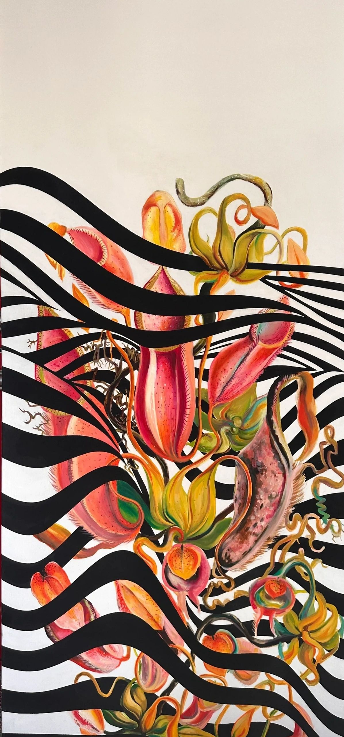 Ivy between the Lines acrylic and oil on canvas 150x70cm 2023